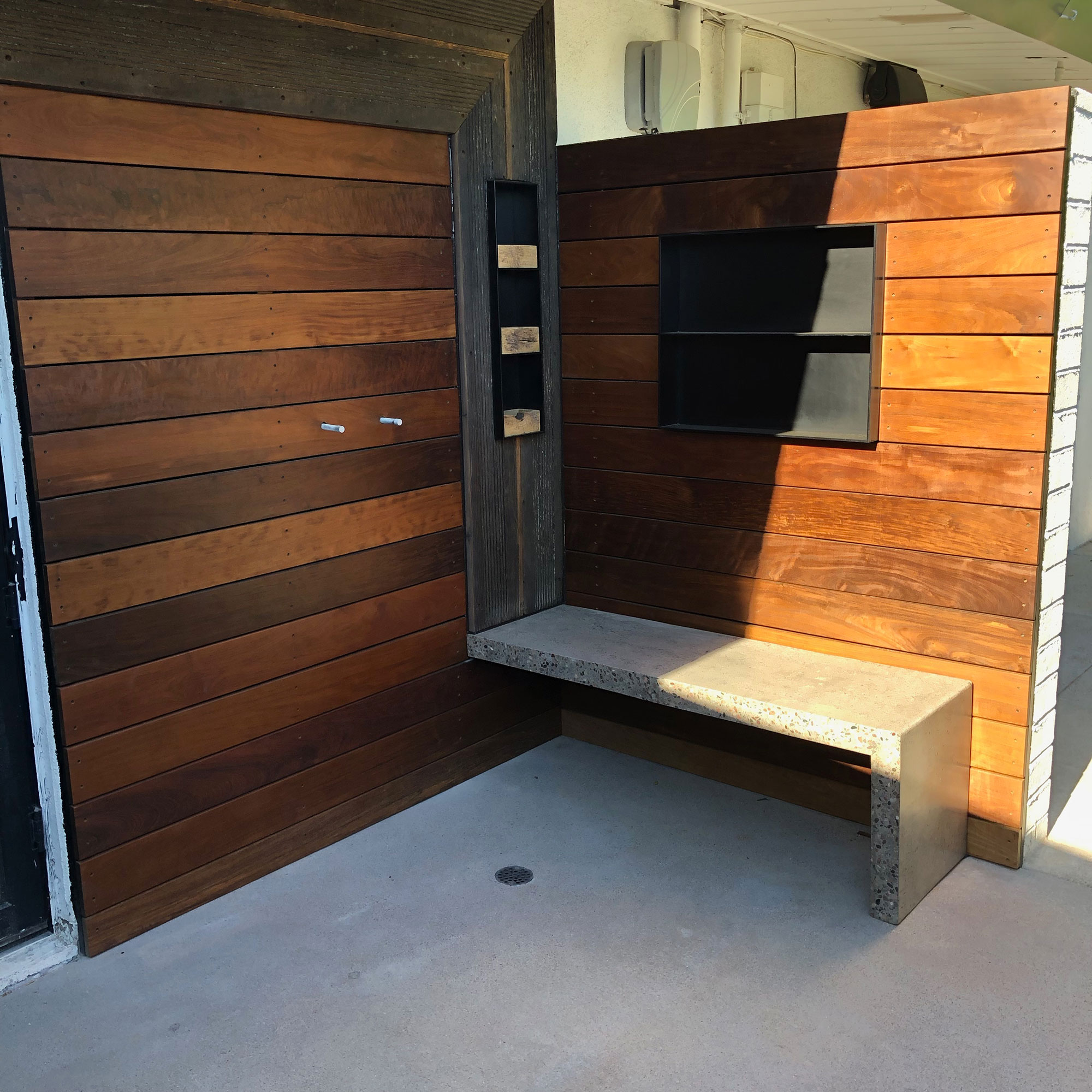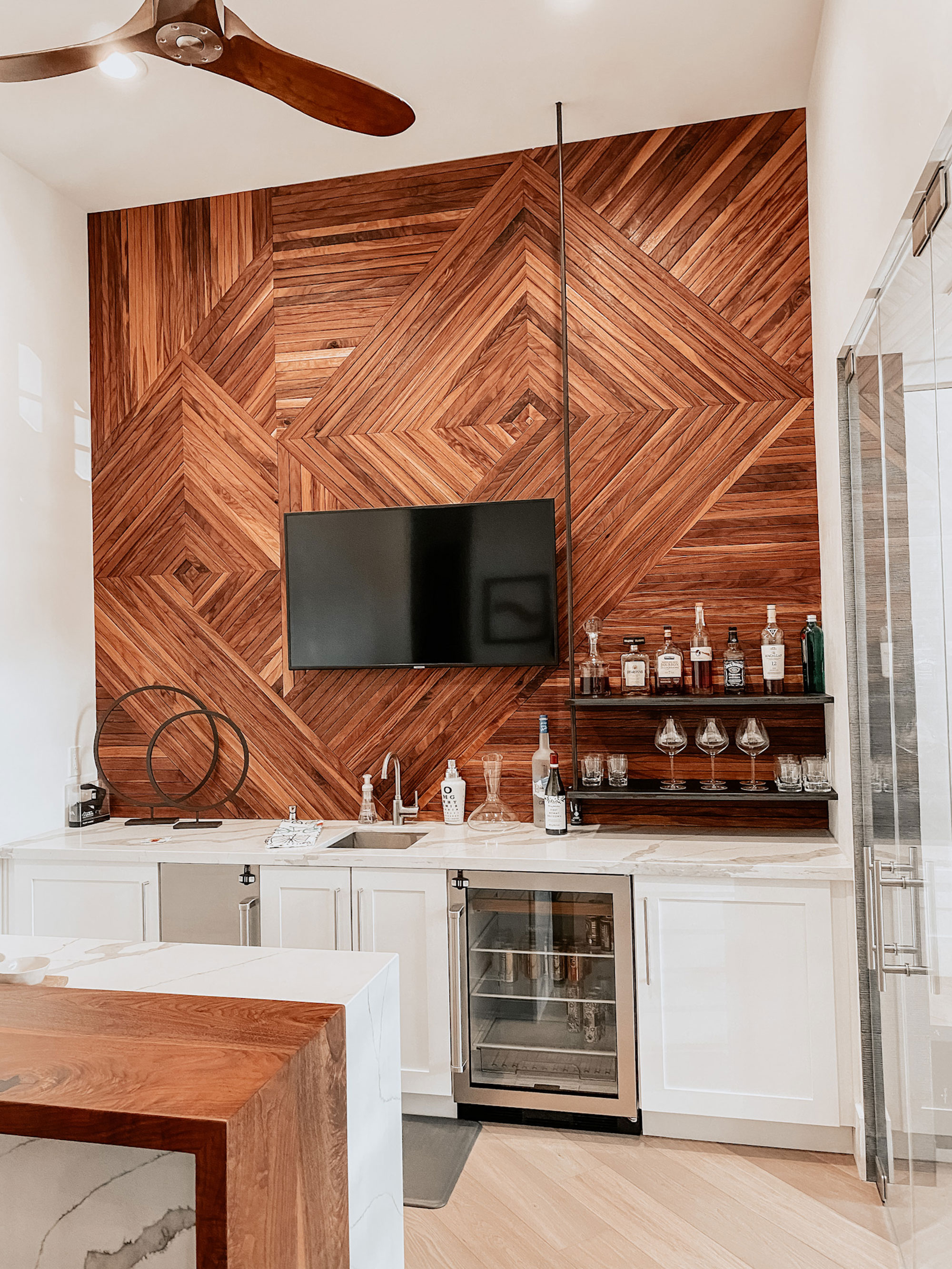 custom feature wall walnut geometric pattern